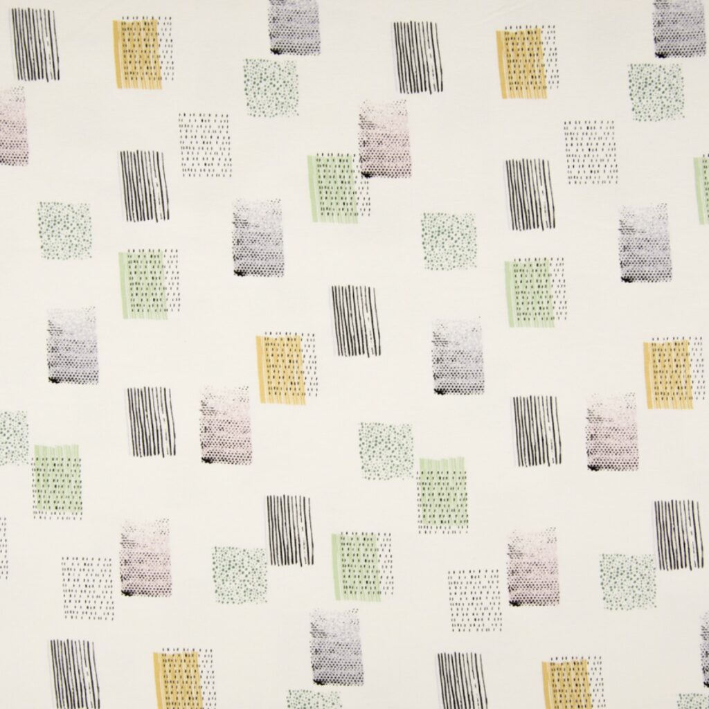 בד מודפס איכותי — רך, נמתח ונעים לעור. מתאים לתפירת בגדים נוחים, בגדי תינוקות, שמיכות ופרויקטים יומיומיים.