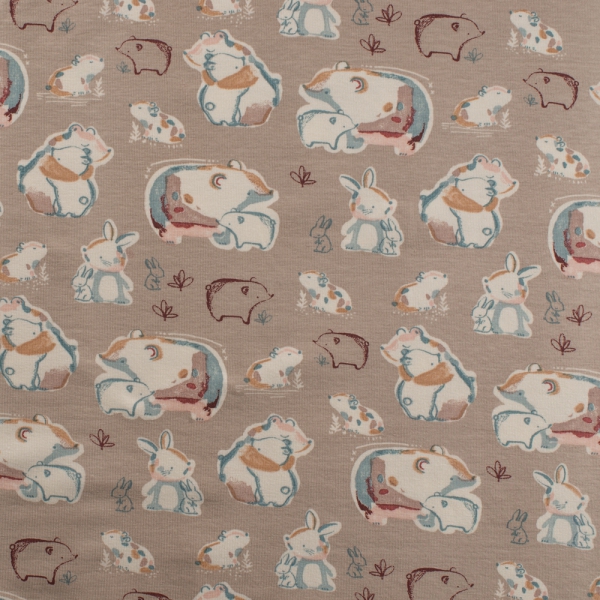 בד מודפס איכותי — רך, נמתח ונעים לעור. מתאים לתפירת בגדים נוחים, בגדי תינוקות, שמיכות ופרויקטים יומיומיים.